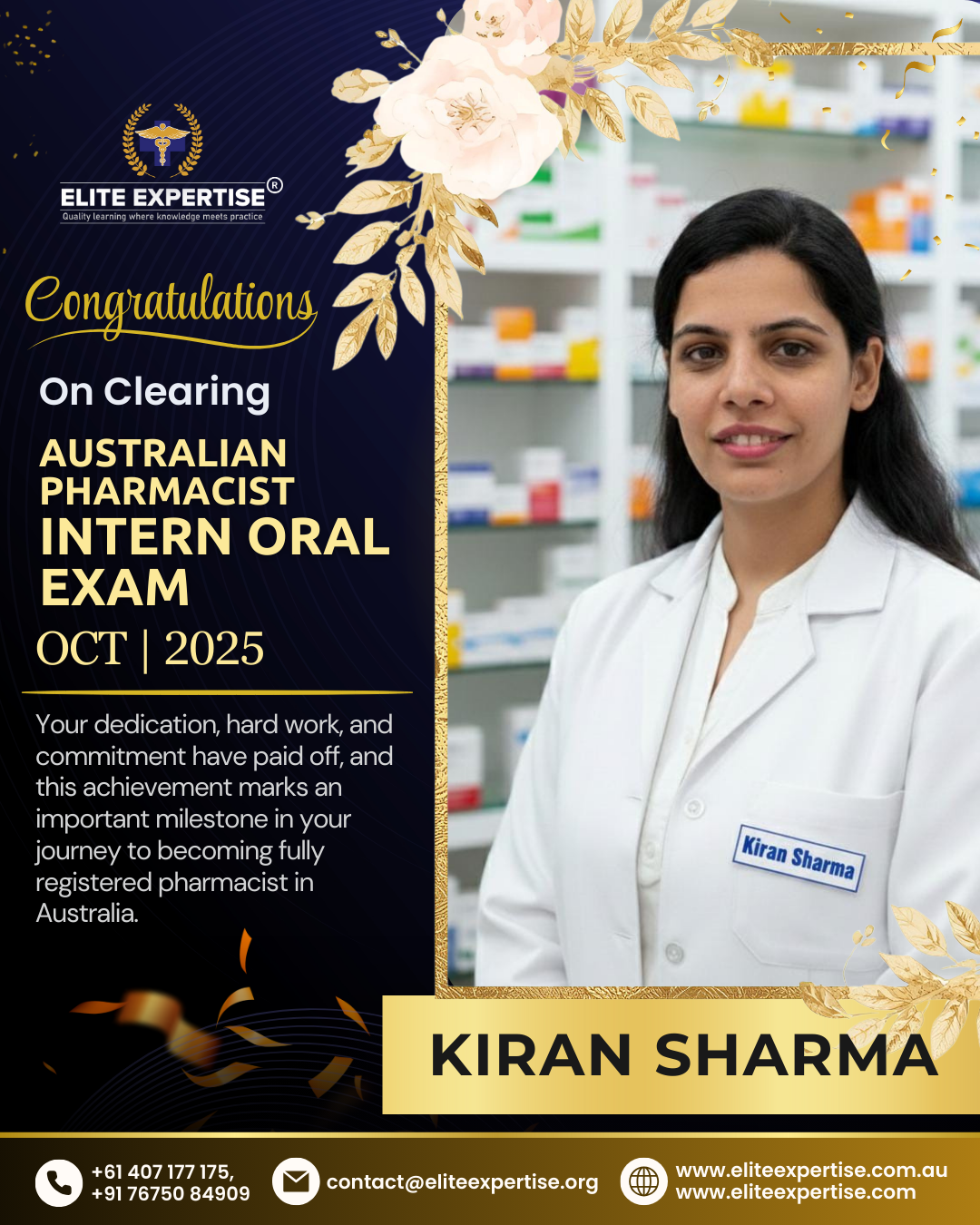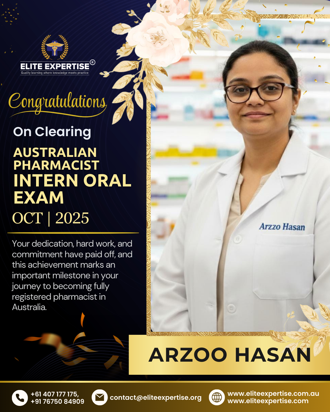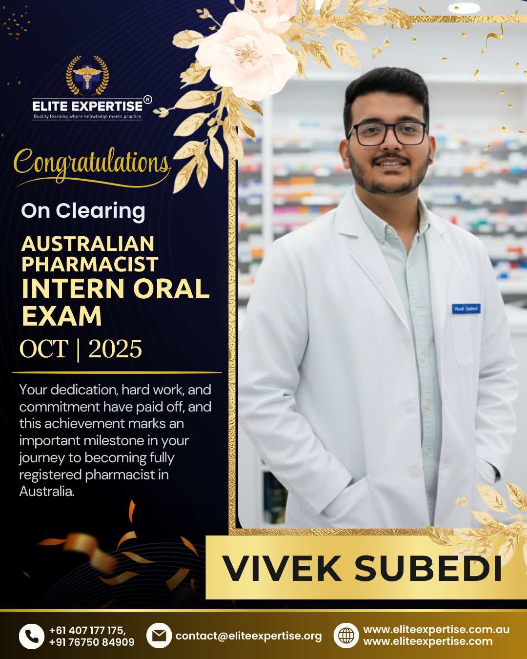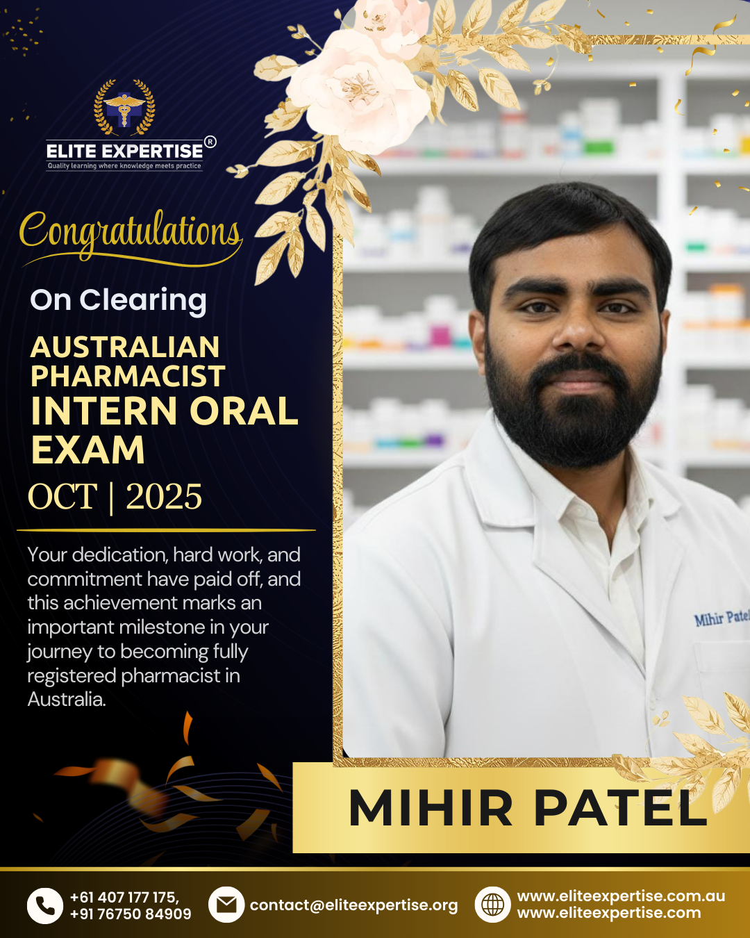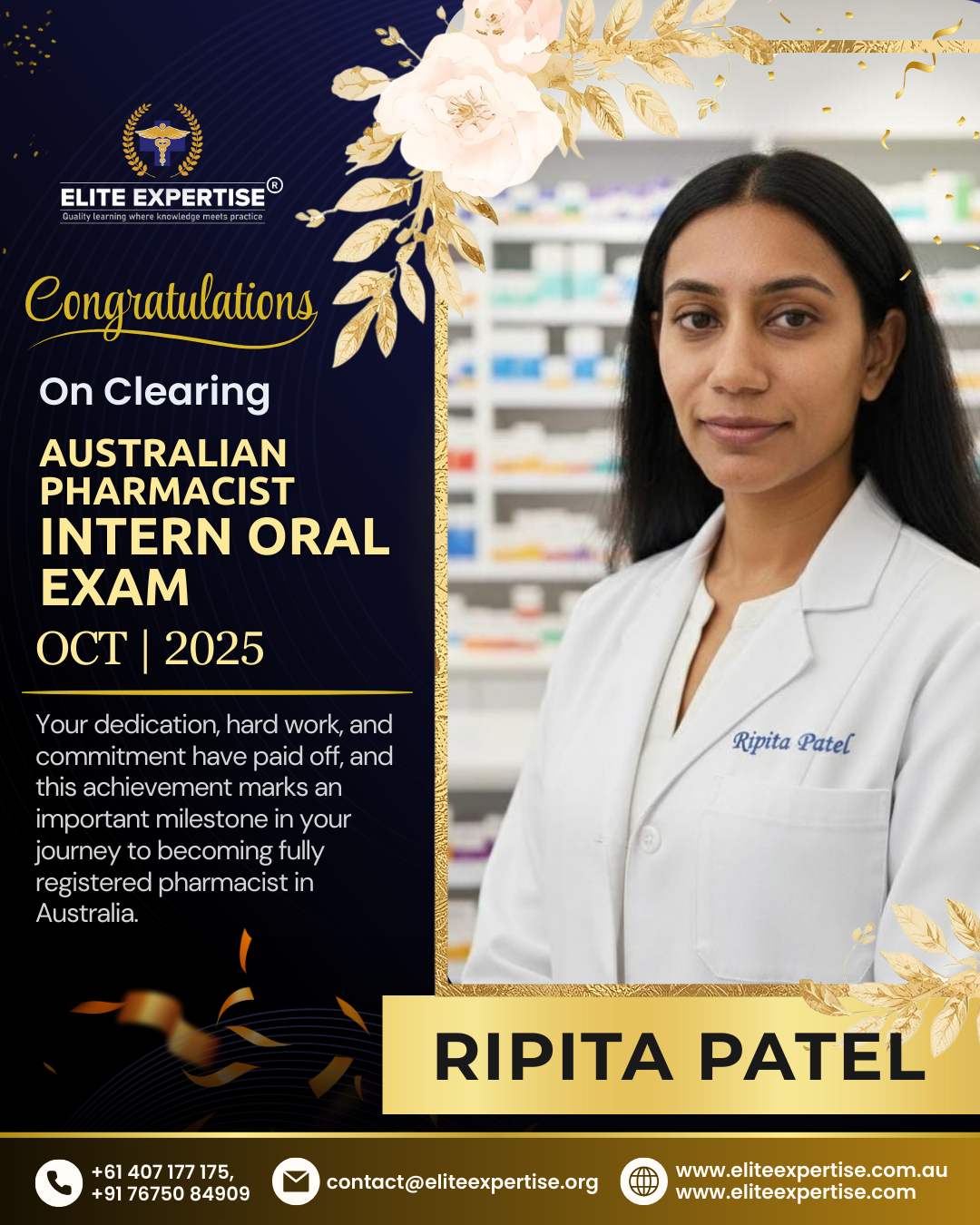 We are thrilled to announce that Elite Expertise students have achieved outstanding success in the OPRA 2025 examination! Your dedication, perseverance, and hard work have paid off brilliantly. Each success story represents countless hours of preparation, unwavering determination, and the pursuit of excellence. We are incredibly proud of every student who has cleared this significant milestone in their pharmacy career. Congratulations to all our successful candidates – your achievement inspires us all. Welcome to the next chapter of your professional journey in Australia!