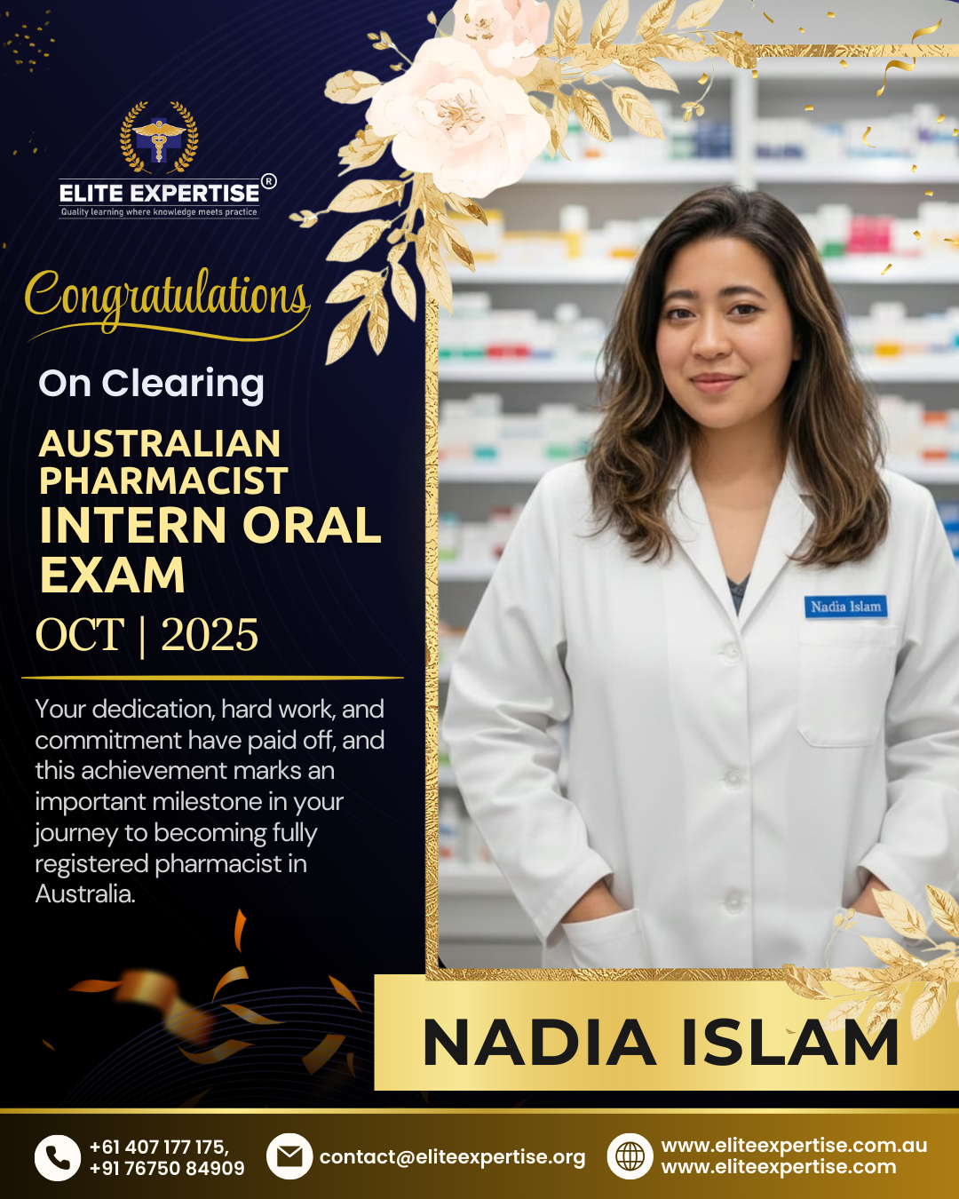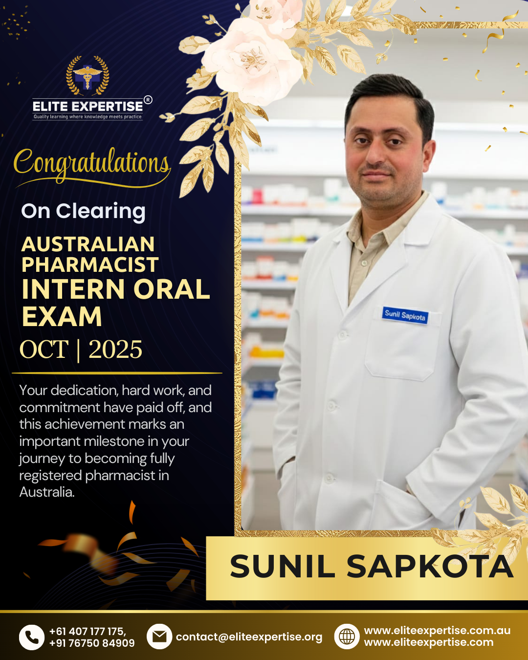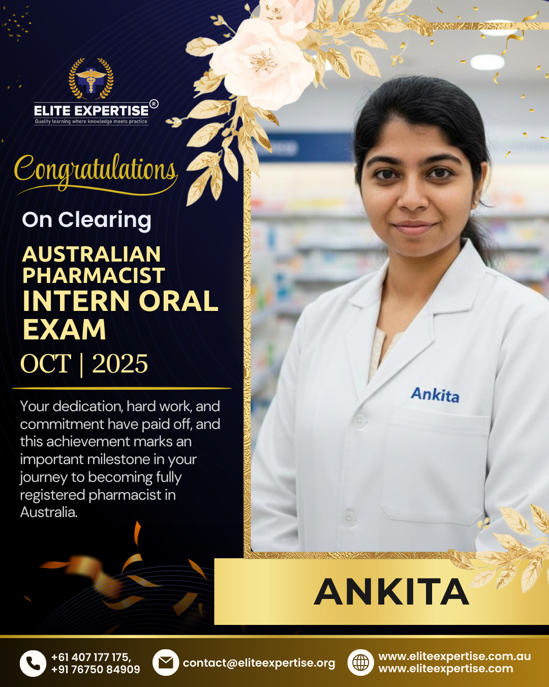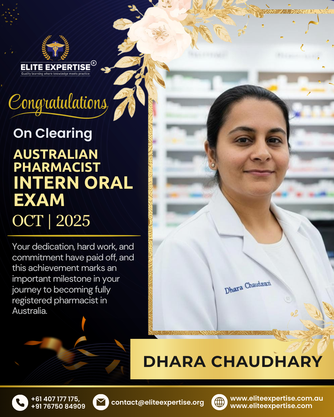 We are thrilled to announce that Elite Expertise students have achieved outstanding success in the OPRA 2025 examination! Your dedication, perseverance, and hard work have paid off brilliantly. Each success story represents countless hours of preparation, unwavering determination, and the pursuit of excellence. We are incredibly proud of every student who has cleared this significant milestone in their pharmacy career. Congratulations to all our successful candidates – your achievement inspires us all. Welcome to the next chapter of your professional journey in Australia!