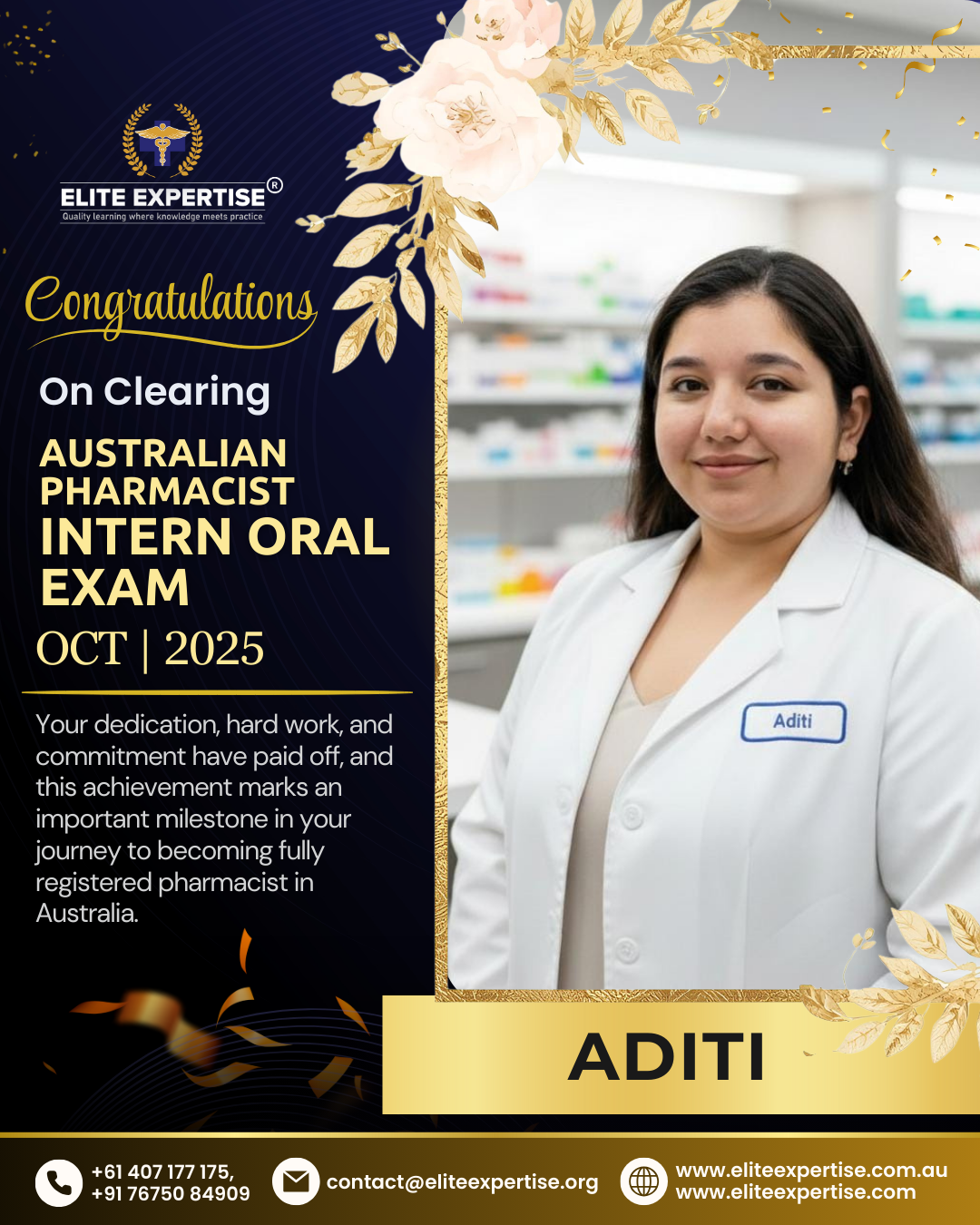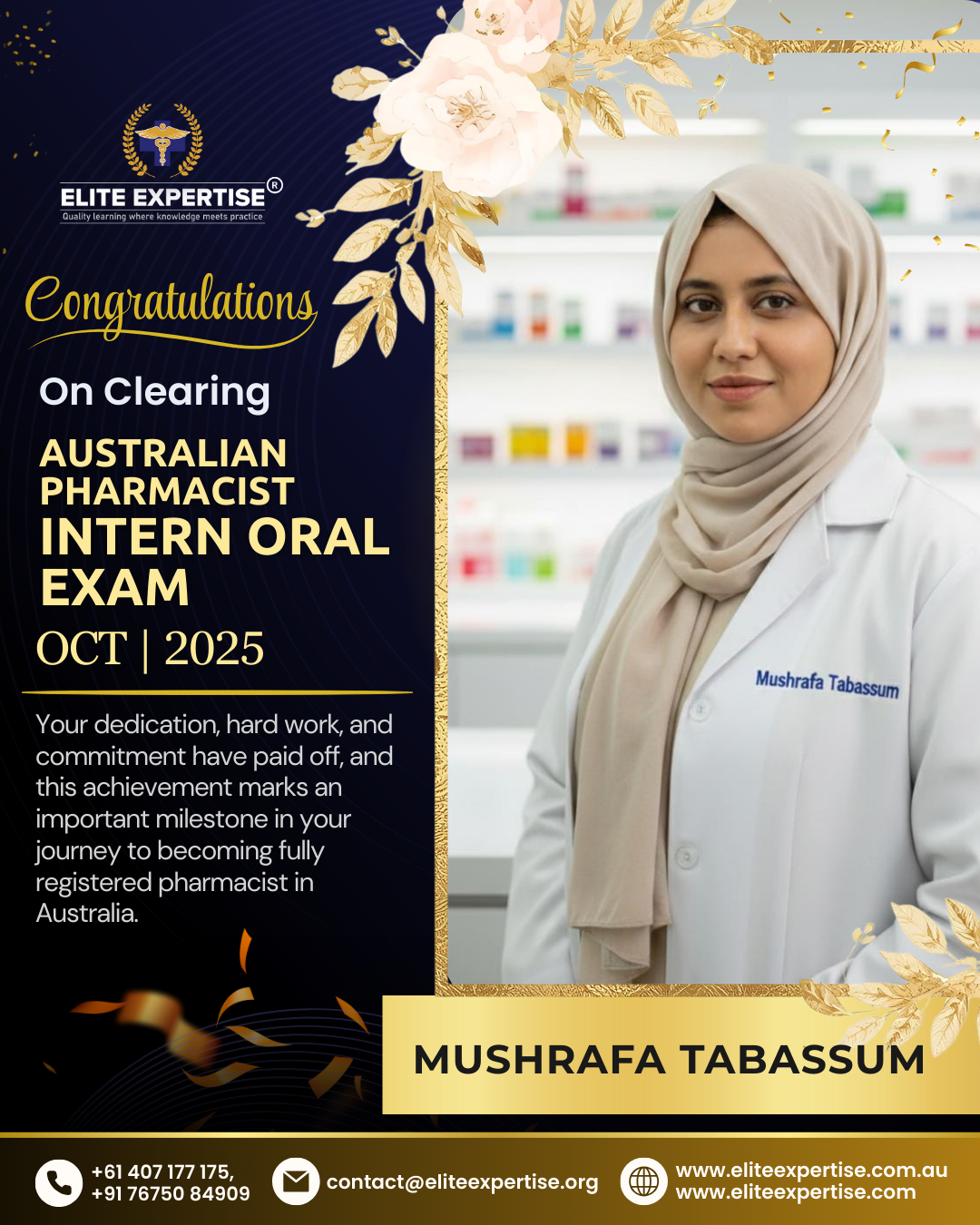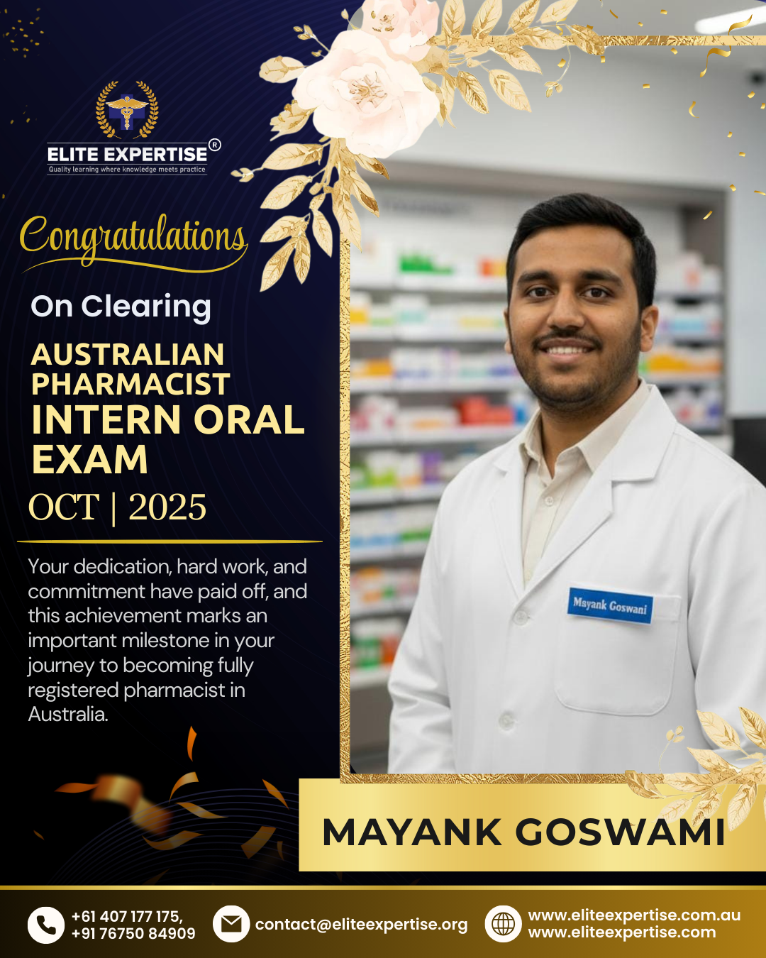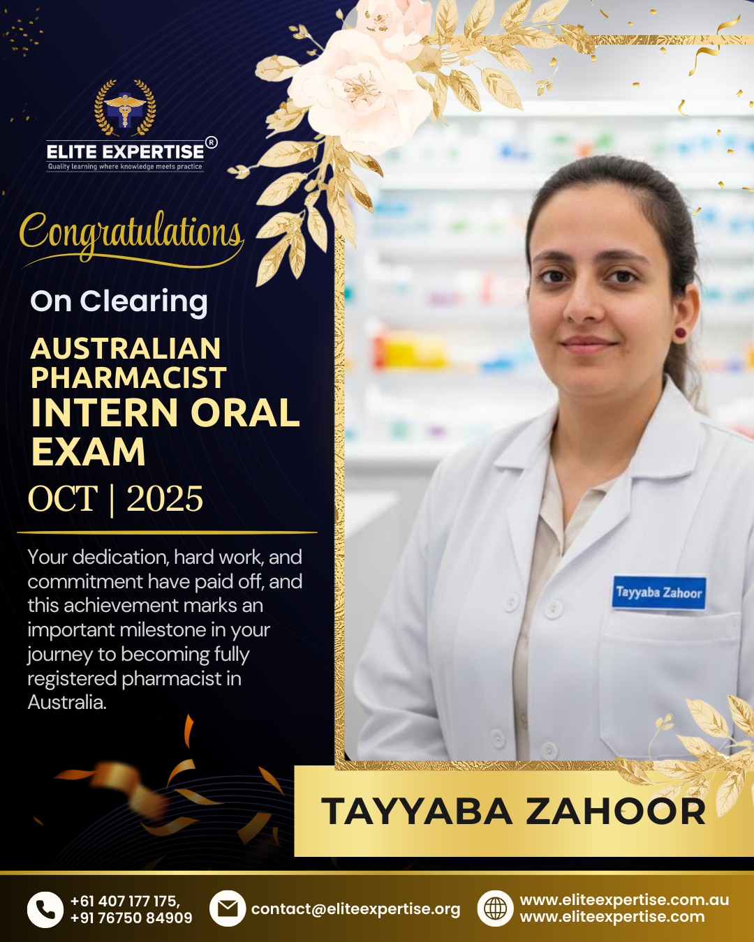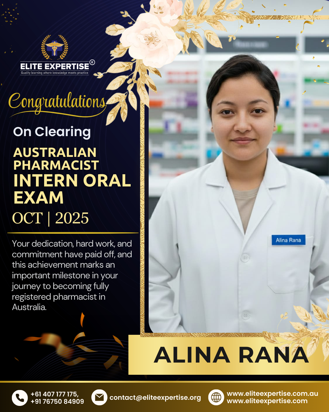 We are thrilled to announce that Elite Expertise students have achieved outstanding success in the OPRA 2025 examination! Your dedication, perseverance, and hard work have paid off brilliantly. Each success story represents countless hours of preparation, unwavering determination, and the pursuit of excellence. We are incredibly proud of every student who has cleared this significant milestone in their pharmacy career. Congratulations to all our successful candidates – your achievement inspires us all. Welcome to the next chapter of your professional journey in Australia!