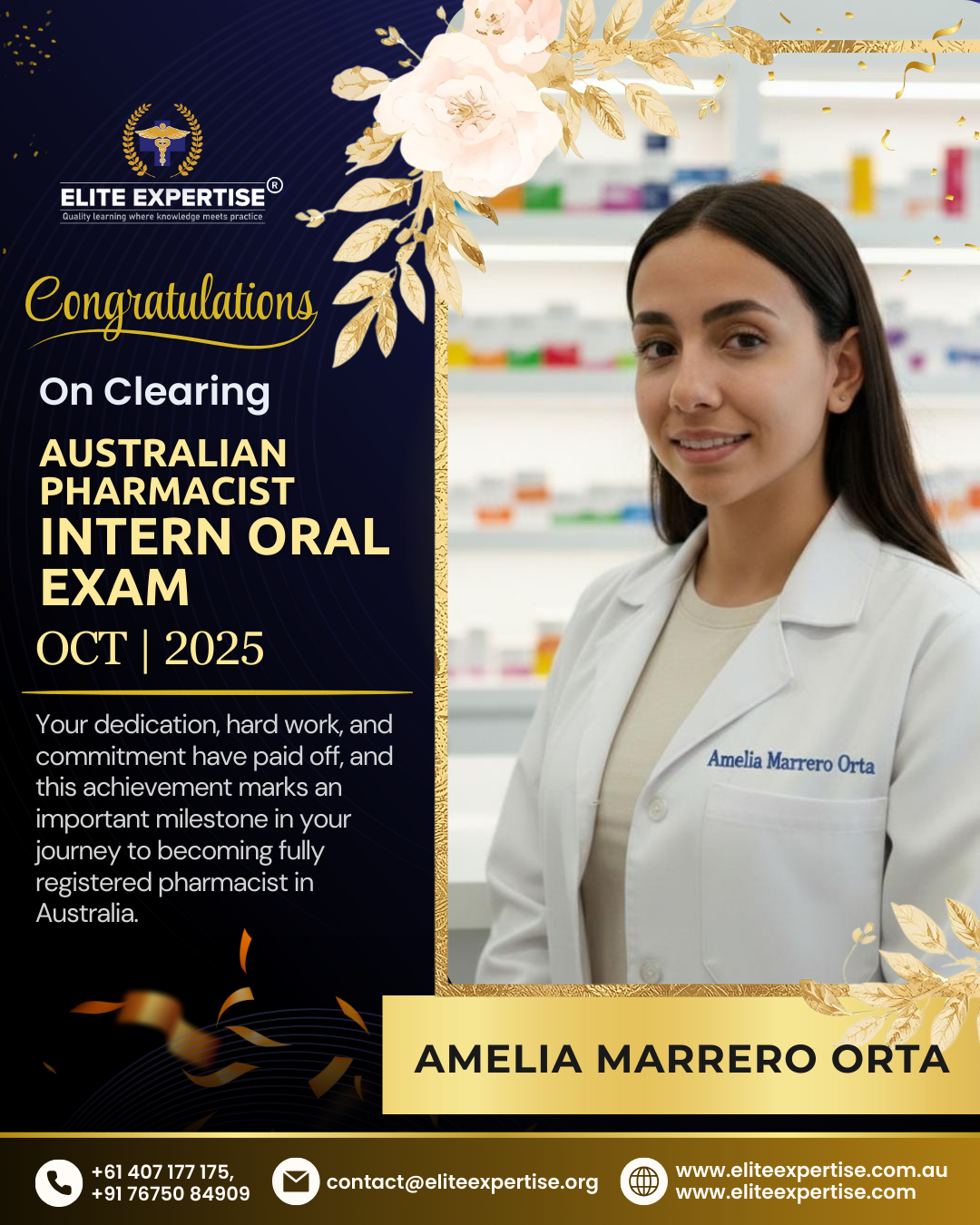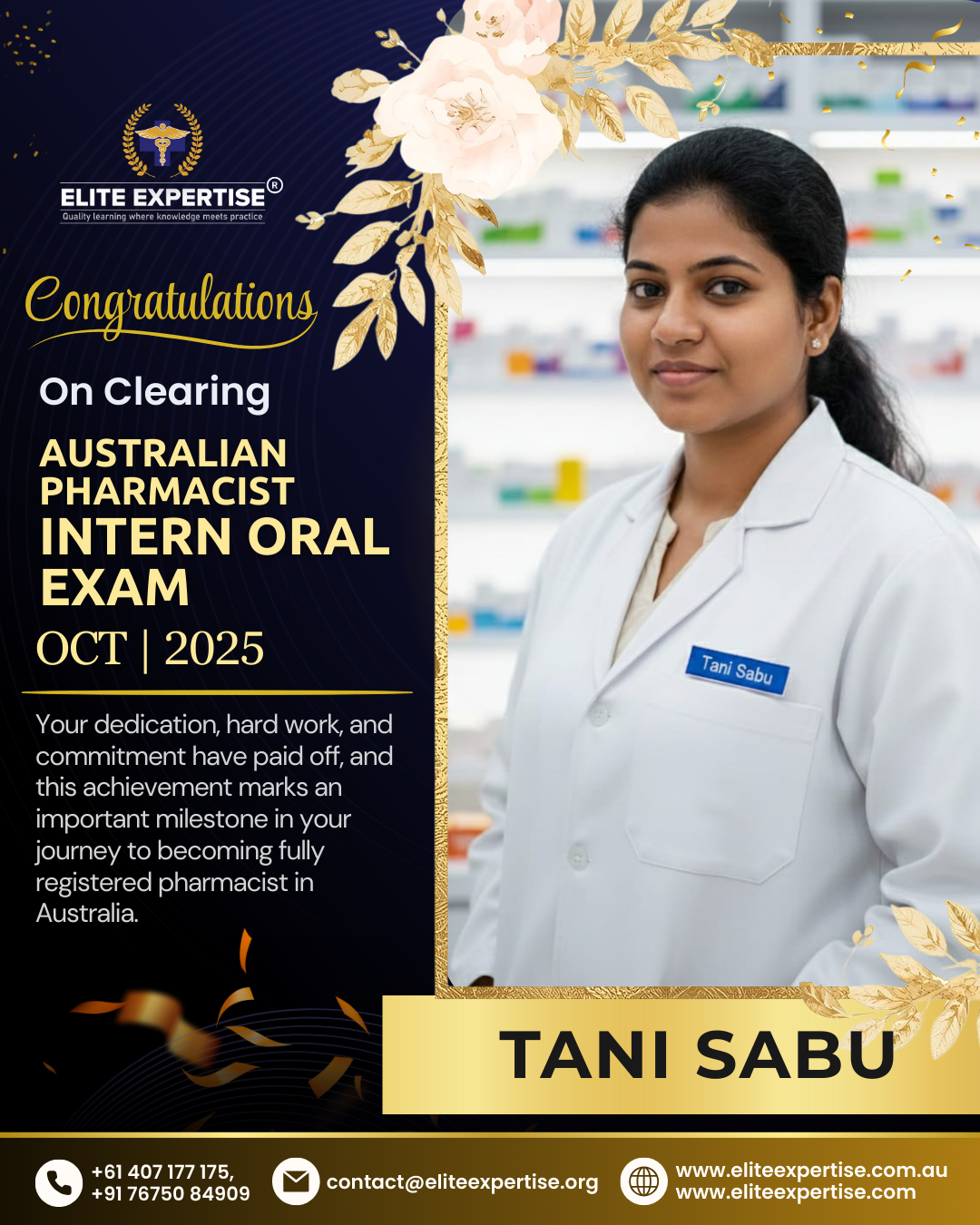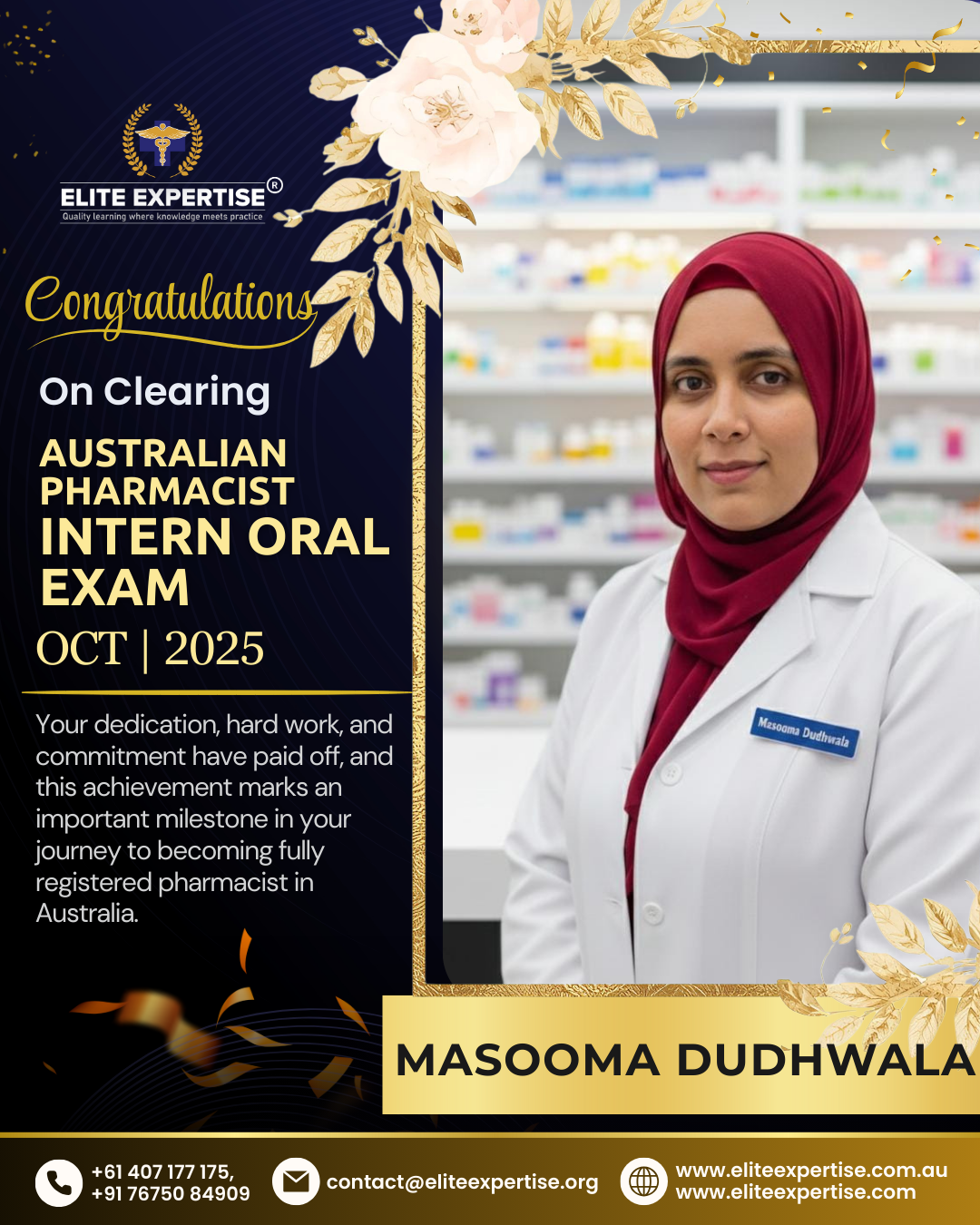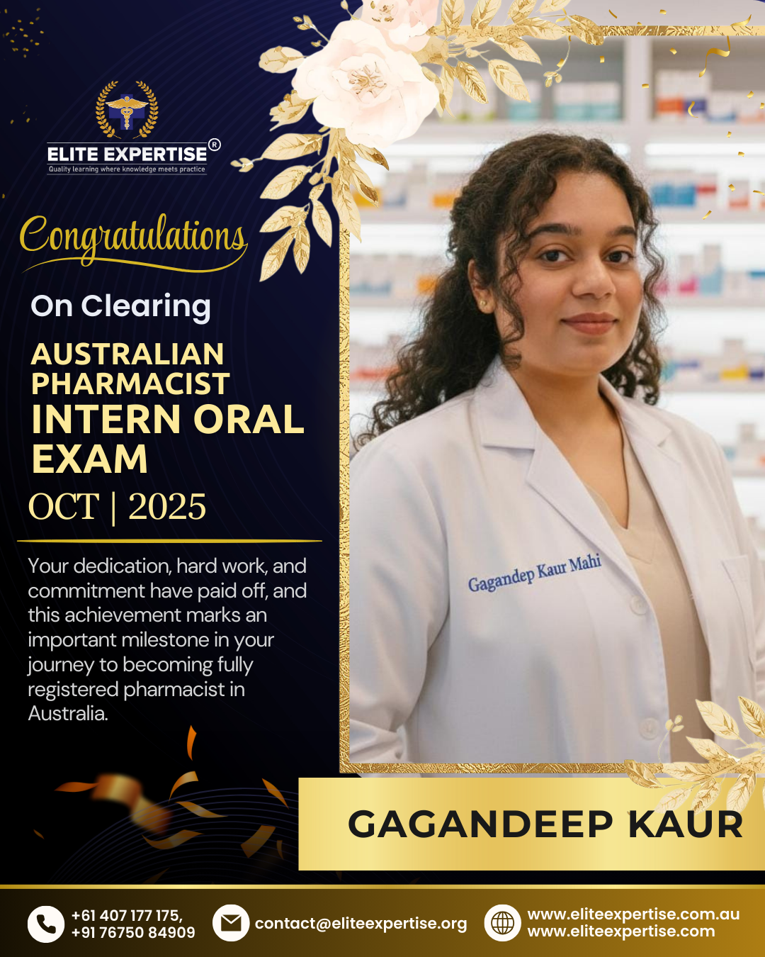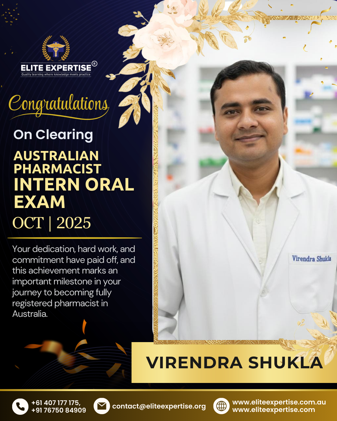 We are thrilled to announce that Elite Expertise students have achieved outstanding success in the OPRA 2025 examination! Your dedication, perseverance, and hard work have paid off brilliantly. Each success story represents countless hours of preparation, unwavering determination, and the pursuit of excellence. We are incredibly proud of every student who has cleared this significant milestone in their pharmacy career. Congratulations to all our successful candidates – your achievement inspires us all. Welcome to the next chapter of your professional journey in Australia!